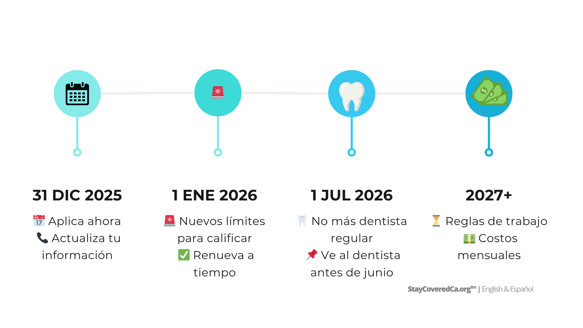 *Importante: Estos cambios dentales aplican principalmente a adultos que son indocumentados a partir de 2026. No todas las personas se verán afectadas. Vea Actualizaciones de Cobertura Dental más abajo.